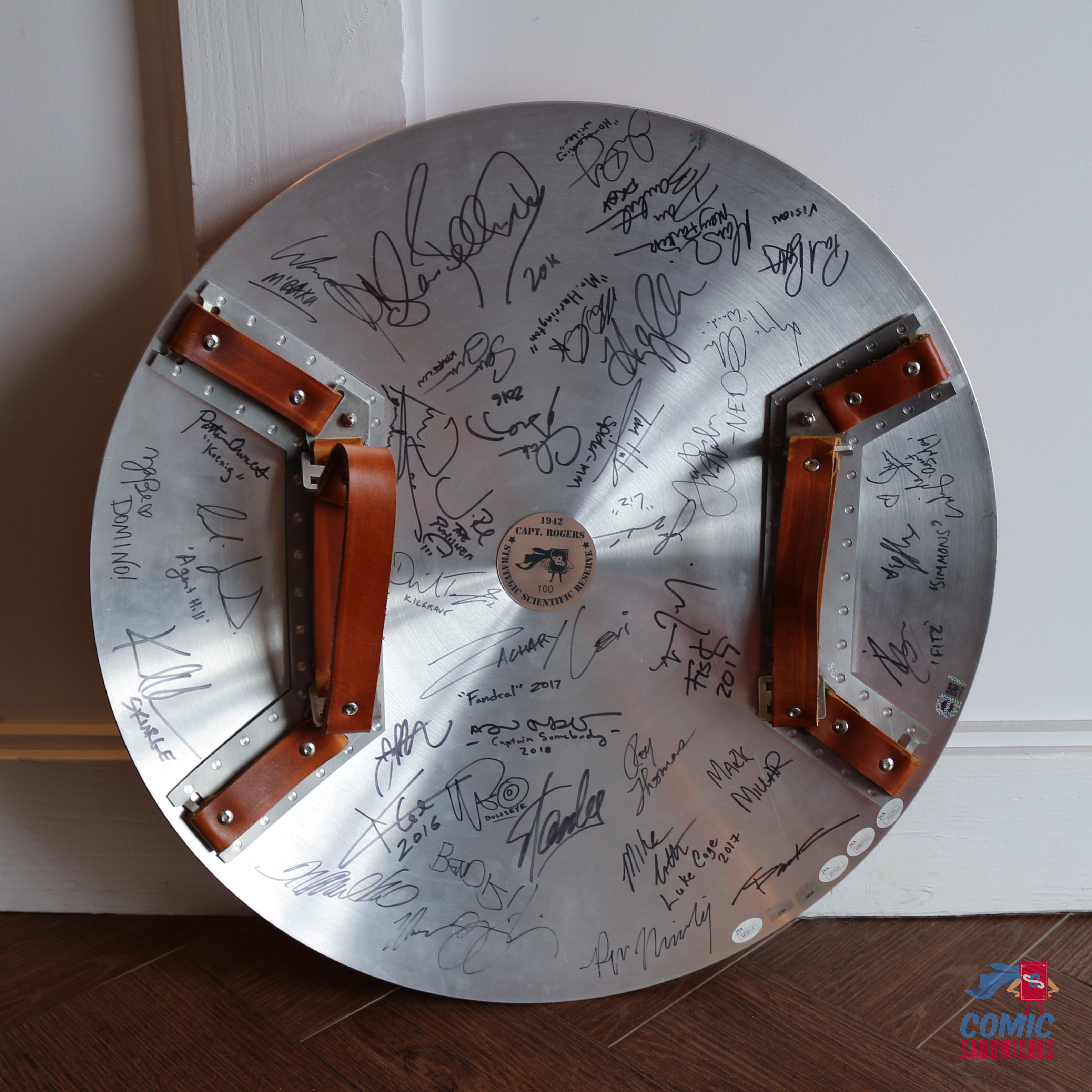 What followed was nearly a decade of comic cons, coast-to-coast travel, early-morning lines, unexpected celebrity encounters, and eventually the moment we finally added Chris Evans to the collection. This is the story of how a 1:1 scale Captain America shield built by us at Comic Sandwiches became a living artifact of the MCU.